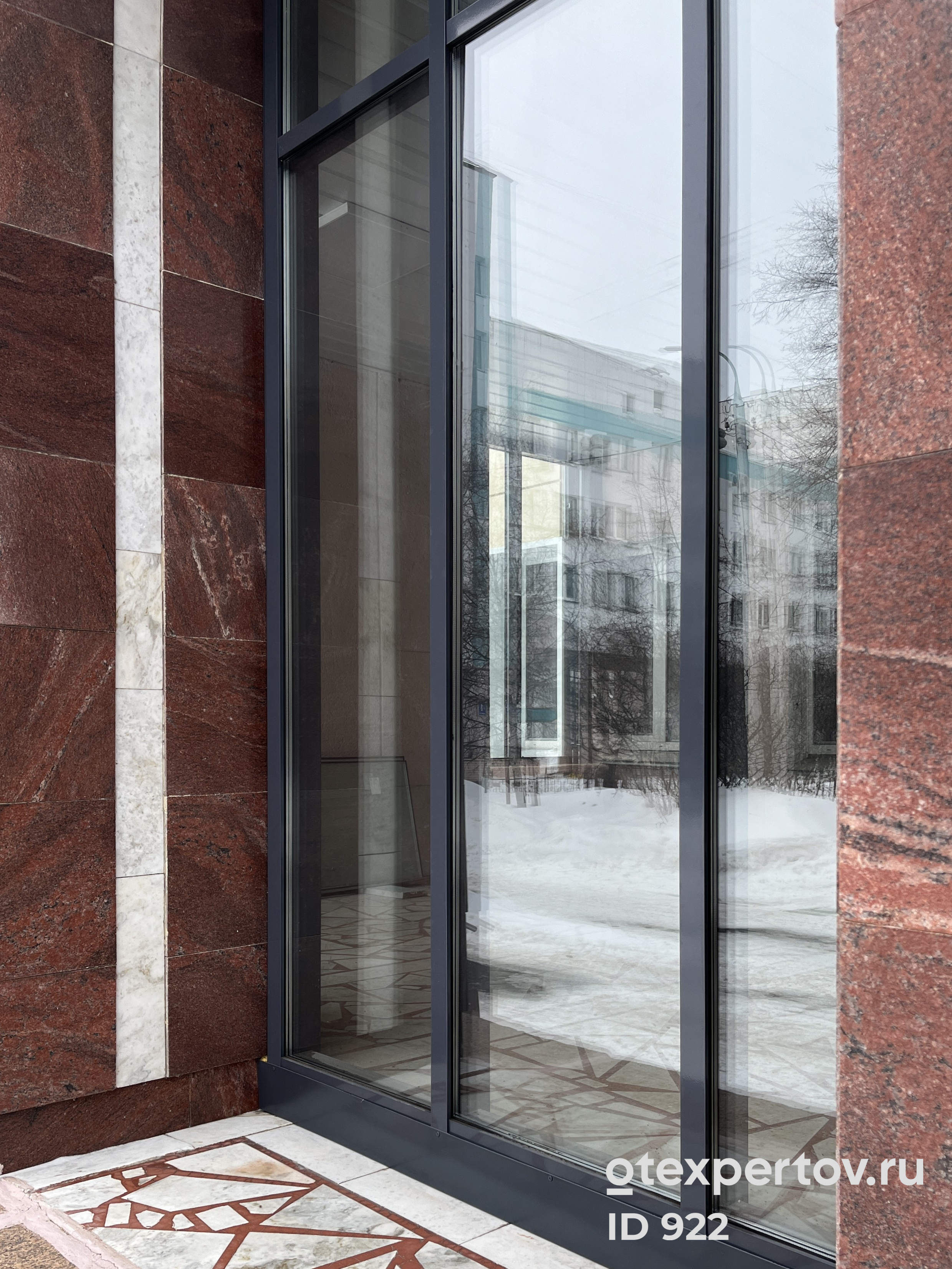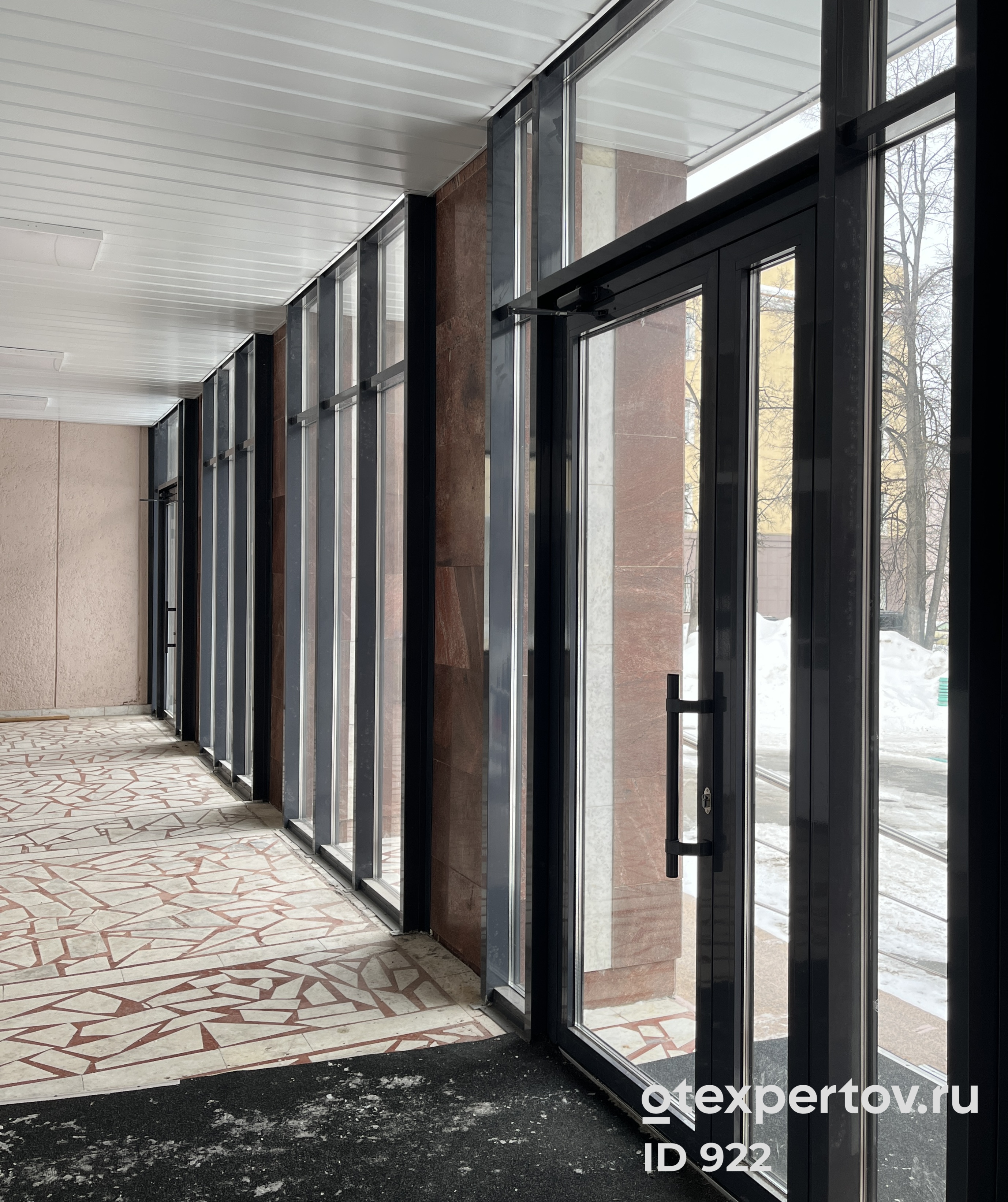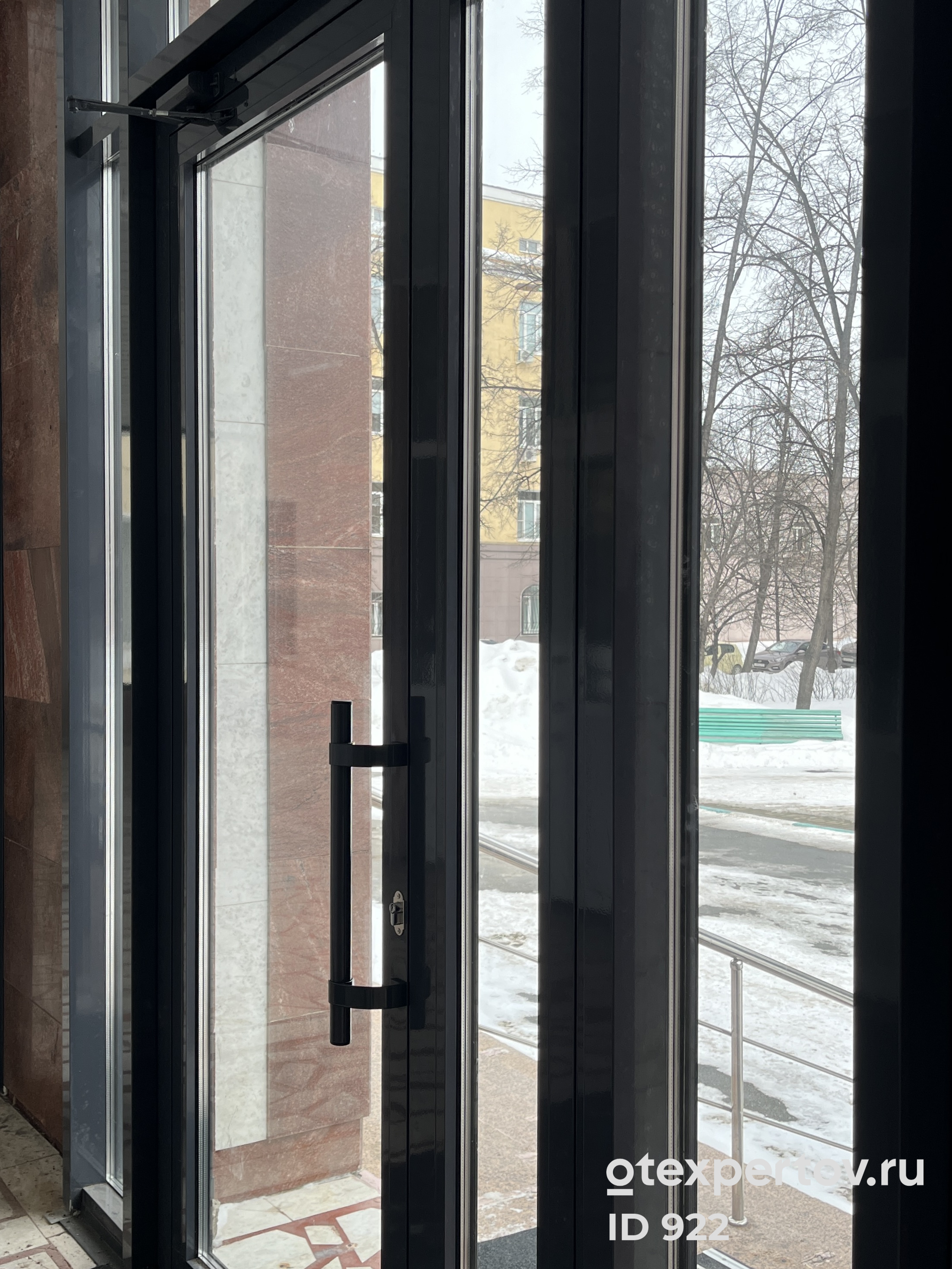 Входные группы с открывающими алюминиевыми дверями, на базе профиля Alutech, с заполнением двухкамерным стеклопакетом 42 мм