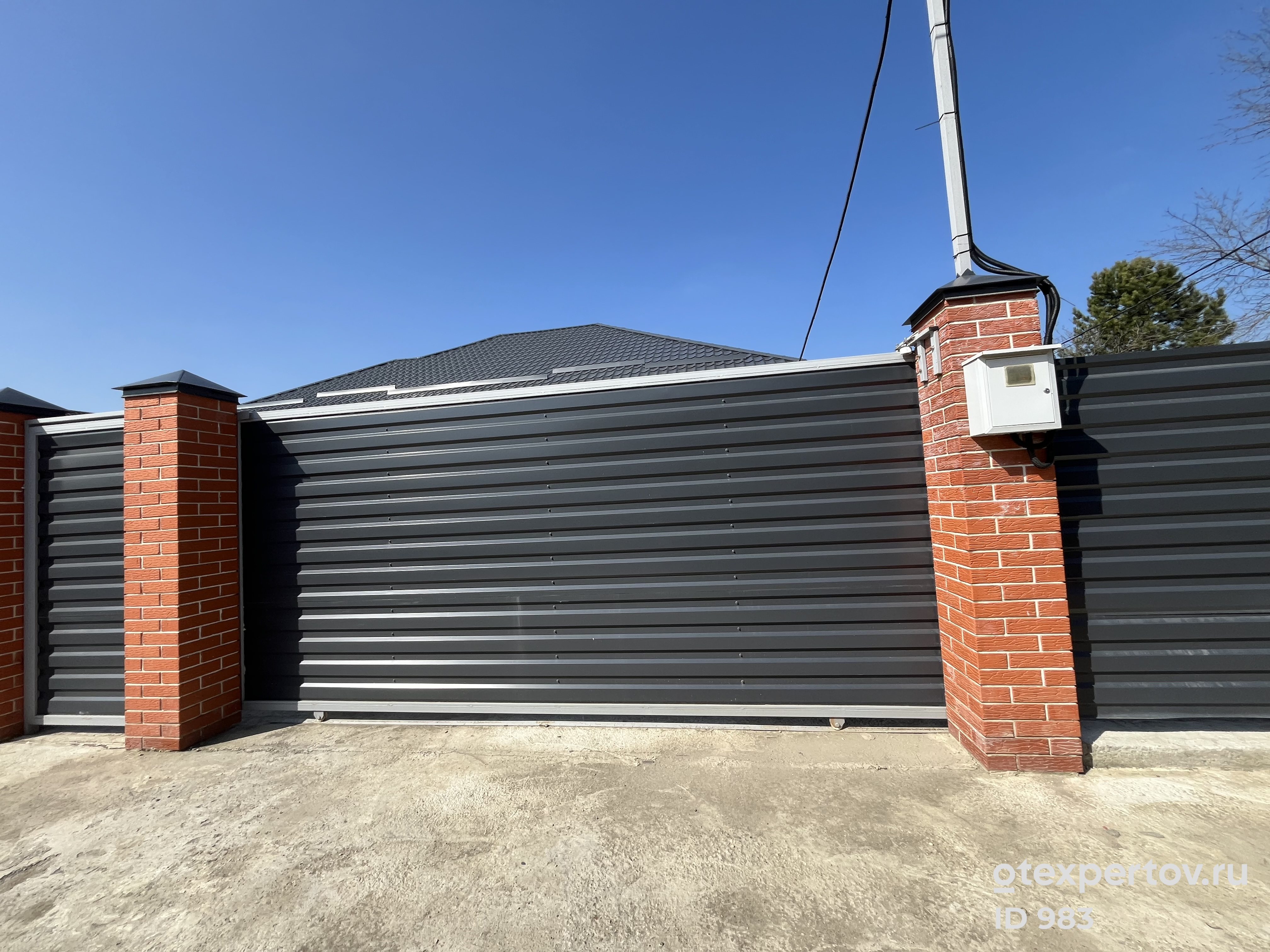 Изготовили и смонтировали заказчику откатные ворота с механическим открыванием. Заполнение профлистом. От договора до установки - 9 рабочих дней.